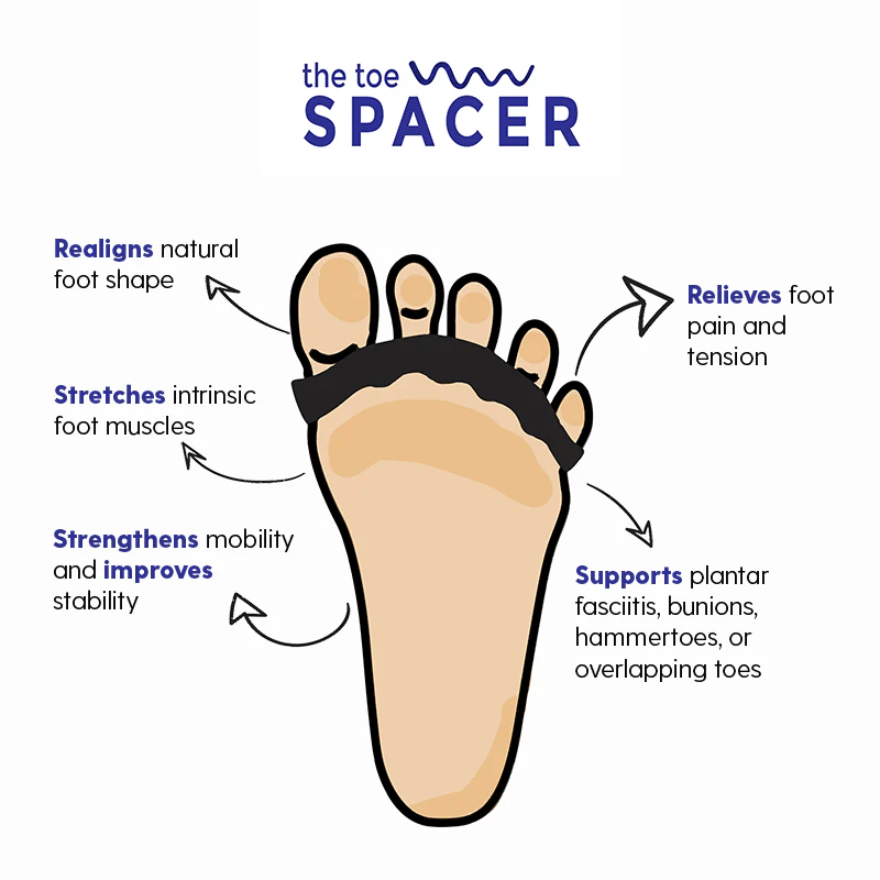 Initially, toe spacers may feel uncomfortable because your foot has adapted to an unnatural position. They will stretch tight muscles and activate others that have been inactive for a long time.