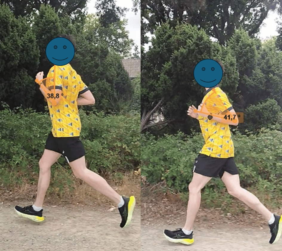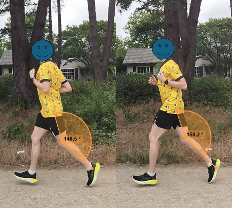 Preferably get close to ~175, so almost fully extended. This lack in hip extension also lowers the maximum stride lenght, often resulting on a higher cadence to compensate. This was the case with him too. Often running at cadences higher than 190.